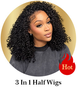 Pre Wand Curls Kinky Straight Wigs 250% Density 3 In 1 Half Wigs For Beginners Flip Over Human Hair Wig
