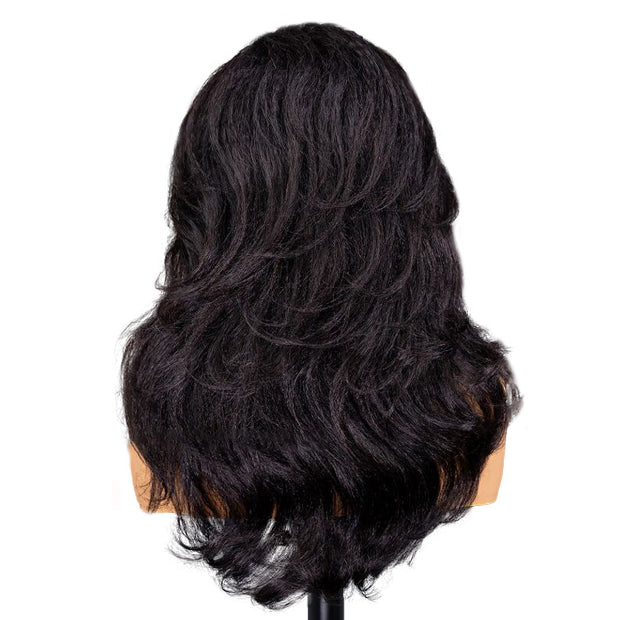Layered Cut Blow Out Kinky Straight Human Hair Half Wigs With Drawstring Pre Styled Yaki Hair Wigs